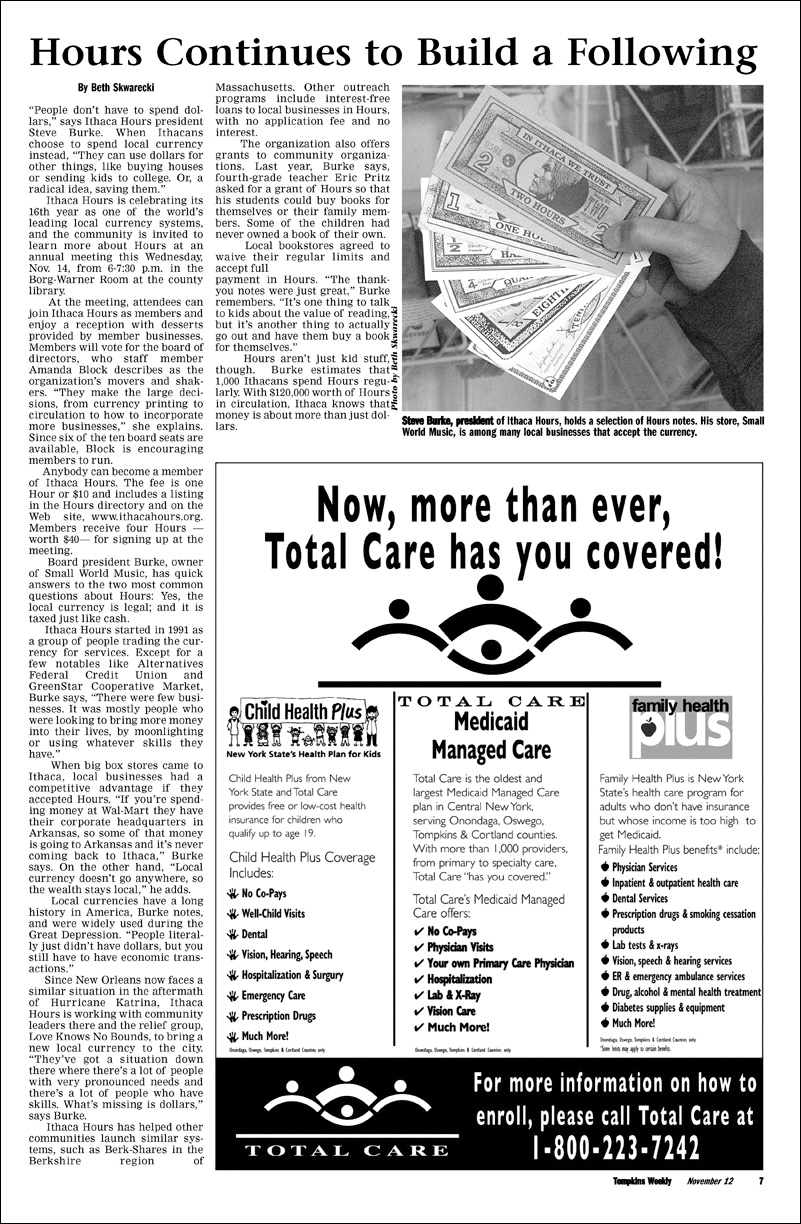 Hours Continues to Build a Following, in Tompkins Weekly, November 2007